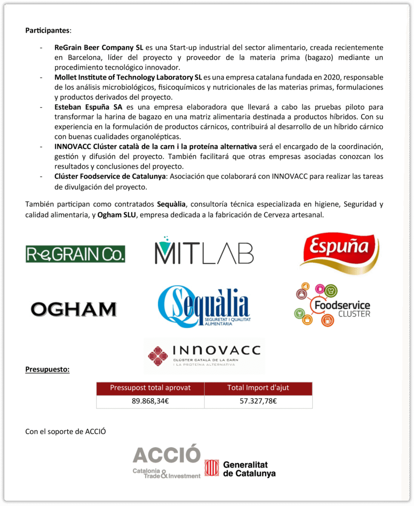“El proyecto TIBAS tiene como objetivo principal la incorporación de una nueva materia prima, procedente del desecho de la industria cervecera, para la elaboración de alimentos basados en proteínas alternativas.